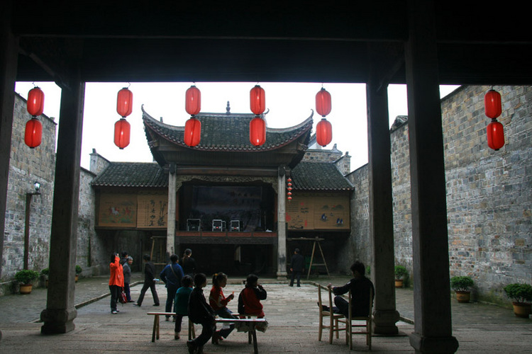 臨河戲臺(tái)幾乎天天都唱戲給烏舡子看。唱他們最愛看的湘劇,并且都是折子戲而非整場(chǎng)戲,因?yàn)檎麍?chǎng)戲常常要唱十天半月,烏舡子沒看得完就要返航。折子戲短,最切合烏舡子的??繒r(shí)日。唱的多半是“三國戲”:《空城計(jì)》、《定軍山》、《走麥城》、《三氣周瑜》,還有《黃鶴樓》、《摘梅桃》……數(shù)也數(shù)不完。戲班子都是由八元堂寧鄉(xiāng)會(huì)館從各地邀請(qǐng)來的,免費(fèi)公演。招呼戲班子的費(fèi)用由會(huì)館埋單,免不了要請(qǐng)到怡華樓、月華樓、奇珍閣等有名的飯館去吃“八大碗”,唱完戲還有夜宵招待,吃靖港的特色小吃。戲班子當(dāng)然就更賣力。烏舡子上的船老大不但愛看戲,還蠻會(huì)享受,他們把船搖得正正地對(duì)準(zhǔn)臨河戲臺(tái),和小老婆肩并肩雙雙坐船頭,一邊津津有味地看戲一邊津津有味地喝著靖港谷酒,吃著從靖港街上買來的香干子和鹵菜,搖頭晃腦,張嘴咋舌,樂不思蜀。也有許多古鎮(zhèn)居民來看免費(fèi)戲,他們常常爬到烏舡子上,與船老板和和老板娘一起看戲,船老板熱情大方,會(huì)讓出座位來,邊看戲邊和本地居民扯談,對(duì)古鎮(zhèn)也就更加熟悉了解。
