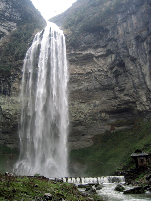 九龍溪源頭的流紗瀑布高216米,是全國最高的瀑布,有人說它還是全世界最高的瀑布,在2011年入選“2011游客最喜愛的中國十大瀑布旅游勝地”。豐水期,滾滾流水從懸崖上飛落入深潭,猶如九龍翻波,吞云吐霧,聲若巨雷,震撼山谷,氣勢磅礴,雄奇壯觀!每當(dāng)枯水時節(jié),流水飄下懸崖,時而如輕紗拂面,時而似珠簾懸掛宛如白紗蕩滌綠潭漾起層層漣漪婀娜多姿溫柔秀雅。從正面仰望瀑布,好像瀑布是從云端飛流直下,可謂“飛流直下三千尺,疑是銀河落九天。”沿潭畔走至瀑布里去,象是猴王鉆進(jìn)了水簾洞。從瀑布背后觀瀑布,只看見瀑布是從一個半園形的“月亮巖”上飛瀉下來的。瀑布在飄、舞、進(jìn)、退,如浪、如波、如紗、如練。由于峽谷變幻莫測。當(dāng)陽光照射時,瀑布上簾便生出七彩長虹。彩虹隨著水珠往下飄落:只見一彩虹落下,一個又冒出來;一個緊接著一個地消失,一個緊接著一個地產(chǎn)生,那一道道閃現(xiàn)奇光的彩虹真是太美麗了!