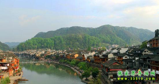 鳳凰古城是中國(guó)歷史文化名城,首批中國(guó)旅游強(qiáng)縣,國(guó)家4A級(jí)景區(qū),曾被新西蘭著名作家路易艾黎稱贊為中國(guó)最美麗的小城。地理位置可概括為:“西托云貴,東控辰沅,北制川鄂,南扼桂邊”。這里與吉首的德夯苗寨,永順的猛洞河,貴州的梵凈山相毗鄰,是懷化、吉首、貴州銅仁三地之間的必經(jīng)之路。作為一座國(guó)家歷史文化名城,鳳凰的風(fēng)景將自然的、人文的特質(zhì)有機(jī)融合到一處,透視后的沉重感也許正是其吸引八方游人的魅力之精髓。古城建于清康熙年間,這顆“湘西明珠”是名副其實(shí)的“小”,小到城內(nèi)僅有一條像樣的東西大街,可它卻是一條綠色長(zhǎng)廊。