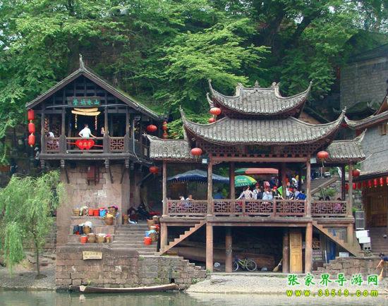 沱江河是古城鳳凰的母親河,她依著城墻緩緩流淌,世世代代哺育著古城兒女。坐上烏蓬船,聽(tīng)著艄公的號(hào)子,看著兩岸已有百年歷史的土家吊腳樓,別有一番韻味。順?biāo)?,穿過(guò)虹橋一幅江南水鄉(xiāng)的畫(huà)卷便展現(xiàn)于眼前:萬(wàn)壽宮、萬(wàn)名塔、奪翠樓……一種遠(yuǎn)離塵世的感覺(jué)悠然而生。沱江的南岸是古城墻,用紫紅沙石砌成,典雅不失雄偉。城墻有東、北兩座城樓,久經(jīng)滄桑,依然壯觀。