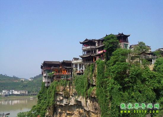 芙蓉鎮(zhèn)不僅是一個(gè)具有悠久歷史的千年古鎮(zhèn),也是融自然景色與古樸的民族風(fēng)情為一體的旅游勝地,又是猛洞河風(fēng)景區(qū)的門戶、一個(gè)尋幽訪古的最佳景點(diǎn)。四周是青山綠水,鎮(zhèn)區(qū)內(nèi)是曲折幽深的大街小巷,臨水依依的土家吊腳木樓以及青石板鋪就的五里長街,處處透析著淳厚古樸的土家族民風(fēng)民俗,讓游人至此贊不絕口,留連忘返。胡績偉先生游覽猛洞河和王村以后作詞贊道:“武陵山秀水幽幽,三峽落溪州。懸崖壁峭綠油油,悠悠蕩華舟。烹鮮魚,戲靈猴,龍洞神仙游,芙蓉古鎮(zhèn)吊腳樓,土家情意稠。”
