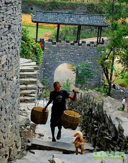 老家寨古苗寨坐落在植被茂盛、生態(tài)環(huán)境良好的棲鳳坡下,四周青山環(huán)繞倒映在如鏡的湖面,八卦圖式建成的寨子,布局精湛,寨內(nèi)的古板小徑,清一色青瓦古墻,曲巷通幽。一片參天的古榛木林,長(zhǎng)在湖邊的小山崗上,守護(hù)著這千年的古寨。傳說(shuō)此地為神鳥鳳凰棲身之地,鳳凰女誕生之處,是苗家青年男女為尋找真正愛(ài)情的勝地。村里的路全部用青石板鋪成,布滿牛糞,屋子也全部是用石頭堆砌而成,一塊一塊的十分整齊,整個(gè)村子都見(jiàn)不到鋼筋水泥,最主要的材料就是石塊,山間、田邊、水邊,人跡所至之處,到處是用石塊堆砌起來(lái)的矮墻,一塊一塊整齊劃一、方方正正,足見(jiàn)苗家人的勤勞。