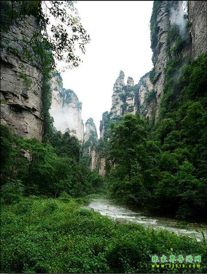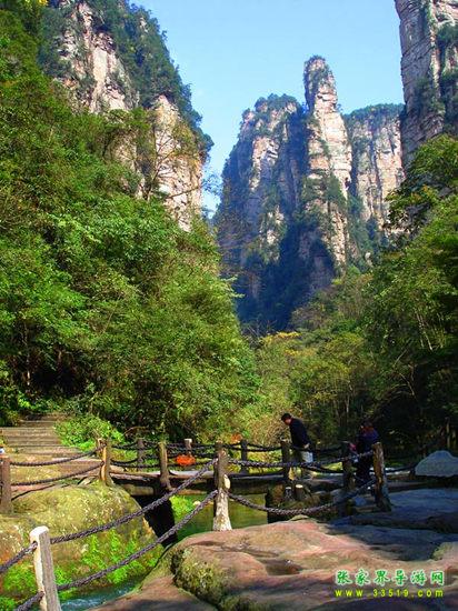 在長(zhǎng)途汽車站(出火車站左手邊)坐車去張家界國(guó)家森林公園,再?gòu)?a class="insidelink" href="http://www.syzsqy.com/Scenic/ZJJJQ/115322494.html" title="張家界國(guó)家森林公園">張家界國(guó)家森林公園門口進(jìn)入后,往前步行300米左右就是金鞭溪的入口。