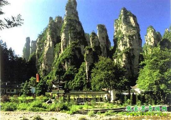南面龍尾溪,北面鴛鴦溪,西面金鞭溪,三水東流匯成索溪,四條溪水,四個(gè)山門,故稱此處為水繞四門。水繞四門又名止馬塔,相傳漢代張良?xì)w隱山林,曾來(lái)到這里,他的馬因迷戀這山環(huán)水繞、如詩(shī)如畫的風(fēng)景,走到這兒硬是不走了。據(jù)說(shuō)西北角香爐巖下有張良墓(有待考證),有人寫詩(shī)應(yīng)合:“踏遍青山尋古人,四門水繞得佳城。香爐巖下舊土墓,漢代留侯張良?jí)灐?rdquo;相傳這兒還曾是明朝初年土司王向大坤(自命為天子,人稱向王天子)揭竿起義的地方,因此,那里有一支山峰被命名為萬(wàn)歲牌,另外一大片山峰被稱作四十八大將軍巖——真可謂是“武陵多奇景,誰(shuí)與巧安排?千年萬(wàn)載留與時(shí)人任剪裁!”