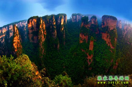 有人曾這樣評價張家界黃石寨:五步稱奇,七步叫絕;十步之外,目瞪口呆。黃石寨這里的每一座巖蜂都是一件古老的藝術(shù)品,它們?nèi)鐒?、如針、如龍首、如龜頭、如現(xiàn)代化都市的摩天大廈……1992年5月,兩位聯(lián)合國世界遺產(chǎn)委員會派來的藍眼睛官員面對黃石寨的磅砣氣勢哦哦連聲,嘆為觀止。