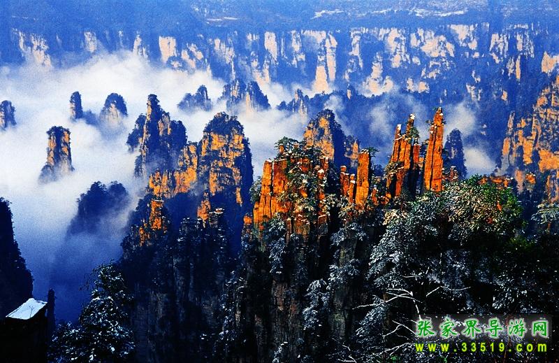 索溪峪風(fēng)景區(qū)索溪峪,西南緊連張家界,西北毗鄰天子山,面積一百四十七平方公里,有景點二百多處。索溪峪山、水、洞自成一體 ,奇峰起伏錯成趣;水,泉清瀑美,千姿百態(tài);洞,幽深神秘,其妙無比。那恍若仙境的地下宮殿黃龍洞,天然浮雕羅列、充滿詩情畫意的十里畫廊,碧波蕩漾的寶峰湖,充滿傳奇色彩的百仗峽及太虛幻境般的西海云霧,一剛一柔、形態(tài)風(fēng)格迥異的鴛鴦瀑 無不令人流連忘返。遠(yuǎn)在明代中葉,就有人在巖壁題詩贊曰: “高峽百丈洞云深,要識桃源此處尋。”