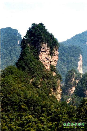 兩支山峰圍成一道天然小石門,大有“一夫當(dāng)關(guān),萬夫莫開”之勢,人稱南天門,據(jù)說過了這道門就是天堂。不過,說來也奇怪,穿過山門之后,山勢為之一變,奇峰怪石,蒼松翠柏,美不勝收,不是天堂,勝似天堂。前面這支位于南天門身邊高200多米的孤立石峰,叫南天一柱。它與一般的山峰不大相同,一般的山峰是下面粗、上面細(xì),而它是上面粗、下面細(xì)。山風(fēng)吹來,這根石柱好像搖搖欲墜,驚心動(dòng)魄之余,仿佛耳邊還能隱隱約約聽到億萬年前地殼運(yùn)動(dòng)時(shí)發(fā)出的轟隆隆的巨響——為了“安全”我們還是繼續(xù)往前走吧。