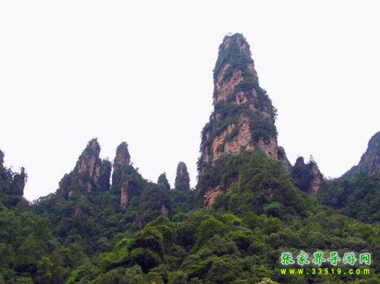 眼前這三支山峰拔地而起,一字排開,好像三姐妹正在四處張望。她們在望什么呢?大姐懷里抱著一個孩子,可是不知道這是誰的孩子;二姐挺著一個大肚子,卻不知道這到底是誰干的好事;三姐暫時還沒有什么情況,但心里好像正在想,昨晚和她約會的那個男人,應(yīng)該是比較負(fù)責(zé)任的吧?——有人開玩笑說,土家族人以歌為媒,戀愛自由,或許,都是山歌惹的禍!三女峰尤以第三峰奇妙,于石峰胸部有一直徑約1米乳眼,由孔中可窺山后天光,既像高懸在石壁上的明鏡,又像少女佩帶著一枚晶瑩透明的玉飾。