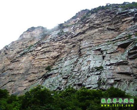 位于插旗峪正中右側(cè)。一石壁從溪邊橫空而起,頂天立地,高約300米,長(zhǎng)約800米。仰望崖壁欲墜,通壁無(wú)掛,醫(yī)理清晰,棱角分明,強(qiáng)健雄渾,銳不可擋。壁前一谷攔泡,空靈清幽。又岸數(shù)峰相對(duì),俯首揖拜。立于板栗山山頂繚望,此堅(jiān)如一孺獸,昂首夾尾,豪氣奪人。