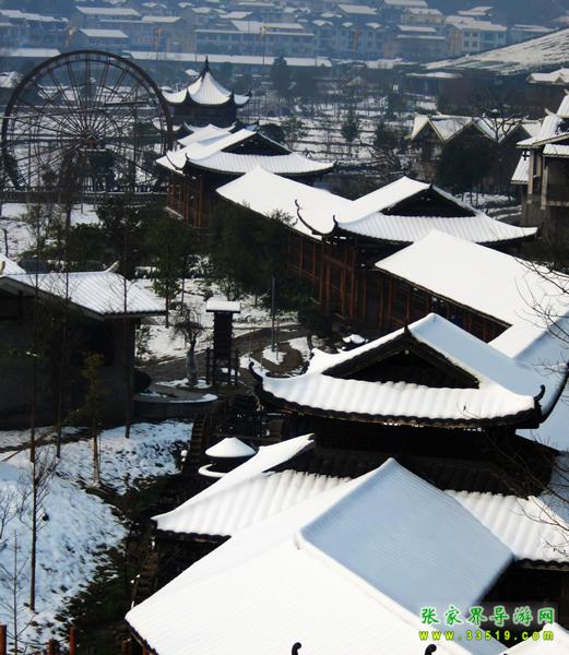 依山傍水而建的土家庭院,總面積有10826.7平方米,形成土家建筑群,分布了商鋪、茶樓、飯店、辦公區(qū)域。哈利路亞音樂(lè)廳是廣場(chǎng)中最大的建筑,它采用了全國(guó)獨(dú)一無(wú)二的斜屋坡面綠化,具有演藝和展示雙重功能,外墻裝飾有流線性的藝術(shù)美感,屋頂綠化與大自然相融,點(diǎn)綴著多色草木,色彩繽紛,形成了“空中花園”的自然觀感。