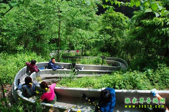 該滑道由清一色的花崗石板拼砌而成,再作精工打磨和拋光工藝處理,內(nèi)槽深45厘米,寬50厘米,滑行用時三至五分鐘,比平常步行跋涉游覽節(jié)約20分鐘,是張家界大峽谷風景區(qū)建成的游客參與性設(shè)施,也是緩解游客游覽體力透支的人性化服務(wù)設(shè)施之一。它將成為海內(nèi)外游客前來張家界大峽谷觀光游覽時節(jié)省時間和體力的最佳選擇。