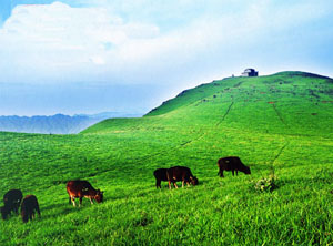 比主峰低百米處是面積達(dá)2000余畝的平坦草原,是放牧開(kāi)發(fā)養(yǎng)殖業(yè)的最好場(chǎng)所。