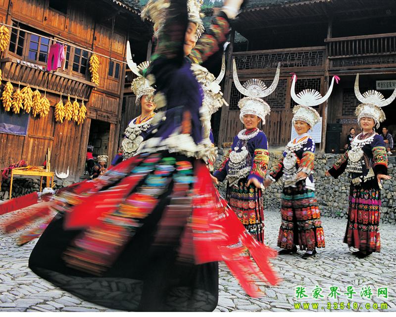 苗族在歷史長河中創(chuàng)造了珍貴的文學(xué)藝術(shù)。苗族民間文學(xué)分為民間歌謠、民間故事和諺語三大集成。民間歌謠分為史詩、古歌、苦歌、敘事歌、生產(chǎn)歌、風(fēng)俗歌、起義歌、情歌、兒歌等,能唱的韻文作品有《遷徙歌》、《勞動歌》、《開親歌》、《盤龍歌》、《盼紅軍》、《送兒當(dāng)紅軍》、《苗家想念紅軍》、《初戀歌》、《定姻緣歌》等。民間故事有《雷公和高比的故事》、《崇山的傳說》、《蘆笙是怎樣吹起來的》、《謊江山》、《石姓不吃狗肉》、《龍家姐妹》、《紅軍樹》等。苗族民間藝術(shù)分為音樂、舞蹈、戲劇和工藝四類。音樂又分為苗歌和樂器兩類。苗歌按其腔調(diào)分為高腔、平腔兩類;樂器按演奏方式分為打擊樂器和吹奏樂器兩類。打擊樂器有銅鼓、銅鑼、銅鈸和鈴等。吹奏樂器有嗩吶、蘆笙、長號、筒簫等。苗族舞蹈有木鼓舞、蘆笙舞、跳香舞和接龍舞。苗族戲劇有儺堂戲、花鼓戲和苗戲等。苗族工藝有刺繡、挑花、織花帶、織提籃、織背簍、蠟染和銀飾等。其中,苗繡、花帶、苗族織錦、苗族銀飾、蠟染服飾和飯簍等工藝品已經(jīng)成為張家界風(fēng)景區(qū)的旅游紀(jì)念品,為海內(nèi)外無數(shù)游客喜愛。