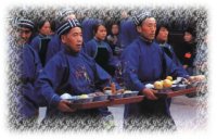 指著圓符,不久,蒙面者便神魂入定;似有神附體,慢慢地全身抖動起來,手舞足蹈,這就是已“進(jìn)入陰間”。據(jù)傳過陰之人,雖蒙頭蓋面,也能辨別方向,隨法師的指使行事,陰間之事能有問必答,人們所要了解之事,也都從他們那里得到答復(fù),并可以探求禳解之法。法師用法術(shù)指使他們?nèi)プ龈鳂邮虑椤5揭欢〞r間,法師用咒語報他們招回,他們在法師的指示下,陸續(xù)返回陽世清醒過來。若有個別不能返回,法師則加倍對他們施法,用刀指向他,并念咒畫符,強(qiáng)令返回。過陰之人蘇醒后,法師揭開頭蓋,這時個個面色慘白,目光遲鈍,如害一場大病。法師再施以復(fù)原之術(shù),使之慢慢復(fù)原。他們復(fù)原后,完全忘記陰間的事情。