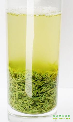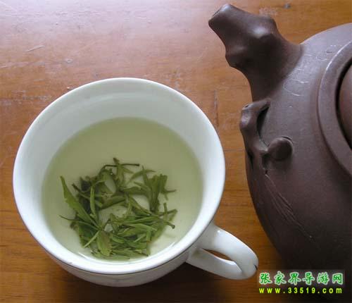 武陵源風景區(qū)盛產(chǎn)香茶,著名的有“青巖茗翠”、“龍蝦花茶”、“黃石寨云霧茶”、“天崇毛尖”與“索溪毛尖”等。通過1982年評比,“青巖茗翠”獲部級金杯獎,同年又獲全國首屆食品博覽會銀獎。“龍蝦花茶”也已列入全國名茶。人們經(jīng)過品嘗、評比,并經(jīng)茶葉專家鑒定,一致認為“青巖茗翠”、“龍蝦花茶”等具有外形美觀,內(nèi)質(zhì)優(yōu)良等特點。這種茶葉,從外形來看,條索緊結(jié),圓渾彎曲,苗鋒顯露,銀毫滿披,色澤翠綠,從內(nèi)質(zhì)來看,清香馥郁,味醇回甘,湯色綠明,葉底均勻,飲后爽神,具有熟板栗蘭花之奇香,飲后回味無窮。據(jù)考證,“青巖茗翠”屬高山云霧茶一類。自古道:“高山出好水,云霧育佳茶”。黃石寨枇杷界海拔1000多米,氣候溫和,云霧繚繞,溫度適宜,因而,茶葉嫩度高,品質(zhì)好。這種獨特的環(huán)境為茶葉中的氨基酸,咖啡堿等有效成分的形成和增長,提供了優(yōu)越的生長條件,而對質(zhì)地粗老的纖維素的形成,則又起到了抑制作用。還有,這些山峰上日照短,直射光少,漫射光多,晝夜溫差大,土質(zhì)的有機質(zhì)豐富,因而結(jié)構(gòu)疏松,排水又好。一切這些因素,都為茶葉的平穩(wěn)生長創(chuàng)造了良好的條件。所以“青巖茗翠”茶,就博得了各地名家的一致好評。湖南省茶葉學會秘書長、湖南農(nóng)學院副教授朱先明品了這種茶以后,賦詩贊美: