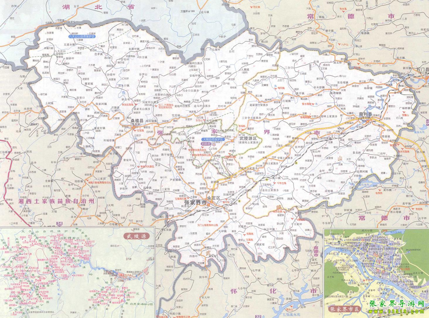 張家界周邊景區(qū)交通圖:張家界國家森林公園及周邊附屬景區(qū)景點(diǎn)交通地圖