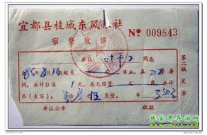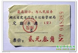 8月14日下午3時(shí),乘坐一輛很破舊的長(zhǎng)途車,約3小時(shí)顛簸到達(dá)宜都枝城鎮(zhèn),即那時(shí)通車不久的枝柳鐵路起點(diǎn),每人2.3元。車票上還印著“最高指示”。